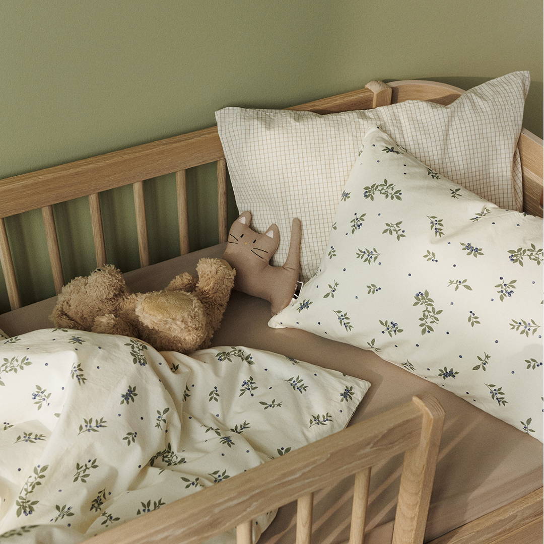 Naše ložní prádlo Blueberries z 100% organické perkálové bavlny je jako lehký letní vánek – odolné, hladké, krásně prodyšné a příjemné na dotek už od prvního povlečení.